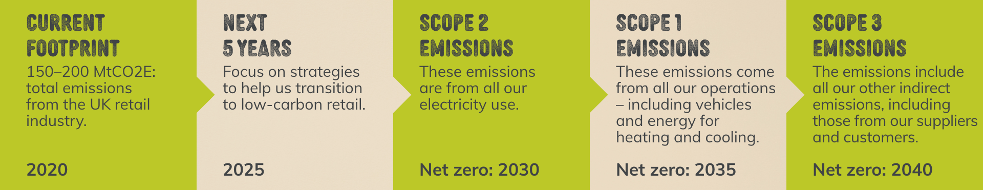 Our targets are ambitious, but they have to be. We recognise the need for urgent action and to come together to make a difference. We’ve worked with the BRC to create the Climate Roadmap below, which details how we can progress towards Net Zero, within Ocado Retail and the whole UK retail industry.